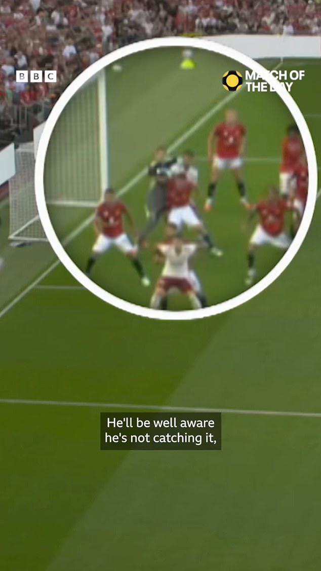 分析进球时,乔-哈特在画面定格于皮球进入禁区的一刻时说:“当球运行到这里时,巴因迪尔应该非常清楚,他要拿到球,所以现在他需要摆脱萨利巴并为自己创造空间,以便更好地应对来球,他肯定知道自己无法接住球,但他必须打出一记强有力的解围。”