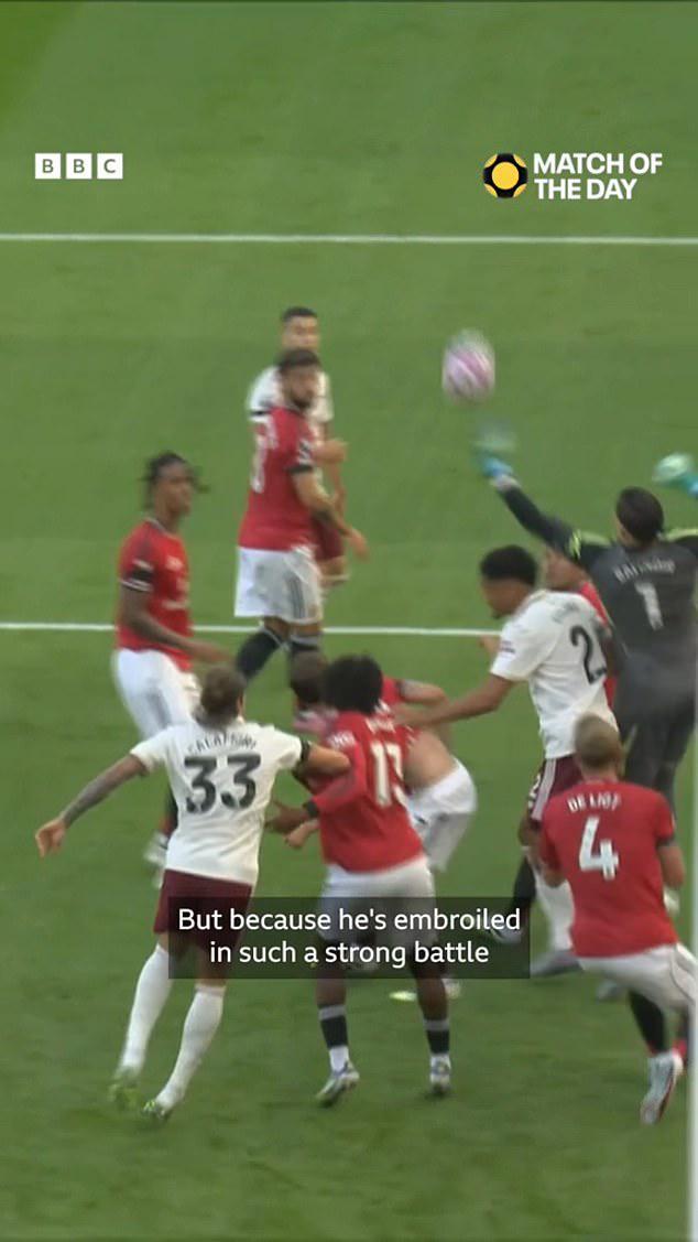 “正如我所说,他面对的是阿森纳最强壮的球员,我会利用芒特来拉开距离,给自己腾出一些空间,同时用左臂挡住对手,然后用右臂完成一记有力的解围,但由于他深陷激烈的对抗,重心完全失衡,导致他无法完成一次扎实的解围。”